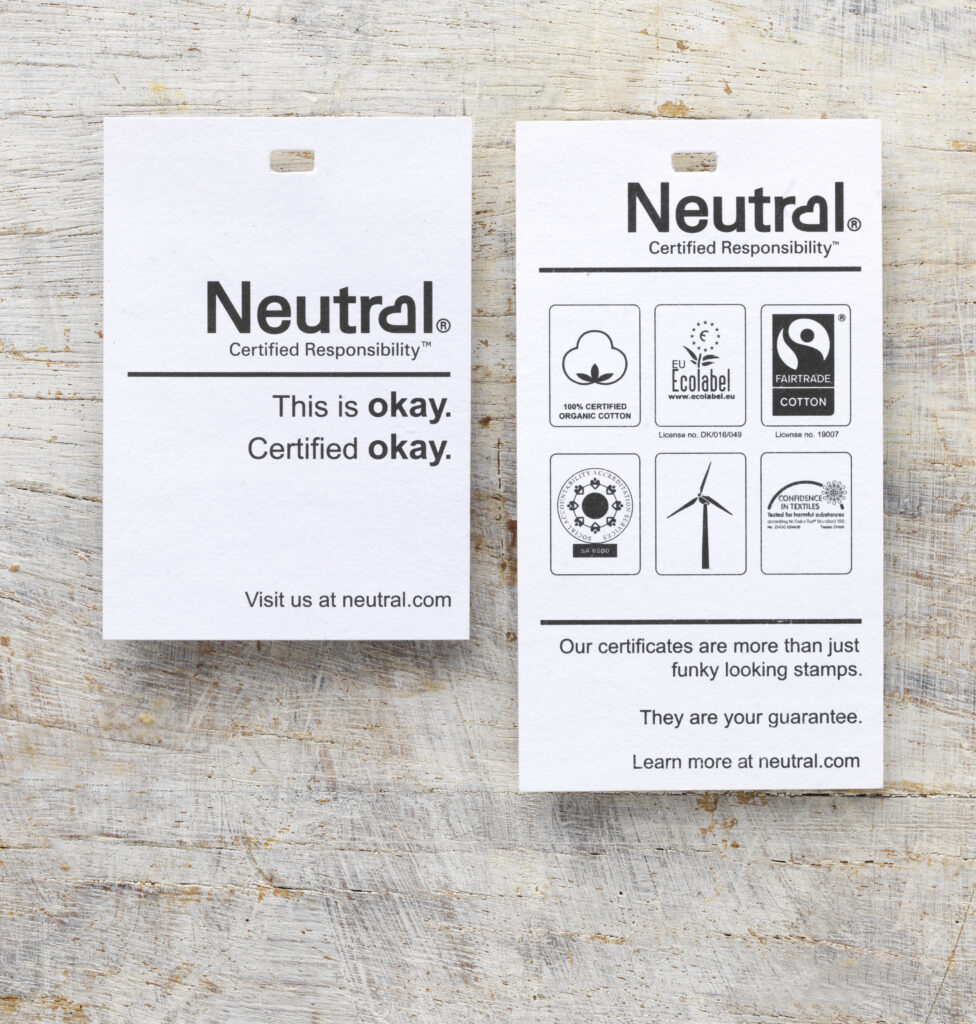 Neutral er et valg vi er trygge på – og stolte av å kunne tilby. Du får profilklær med dokumentert og sporbar opprinnelse. Sertifiserte produkter. Og du slipper å bruke tid på å hente inn og følge opp dokumentasjon selv.